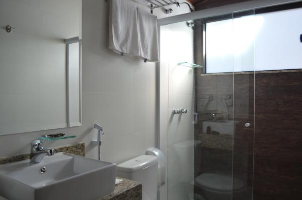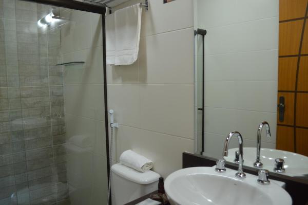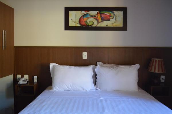 01 cama queen, ar condicionado com aquecedor, TV 32", frigobar, telefone e secador de cabelo.